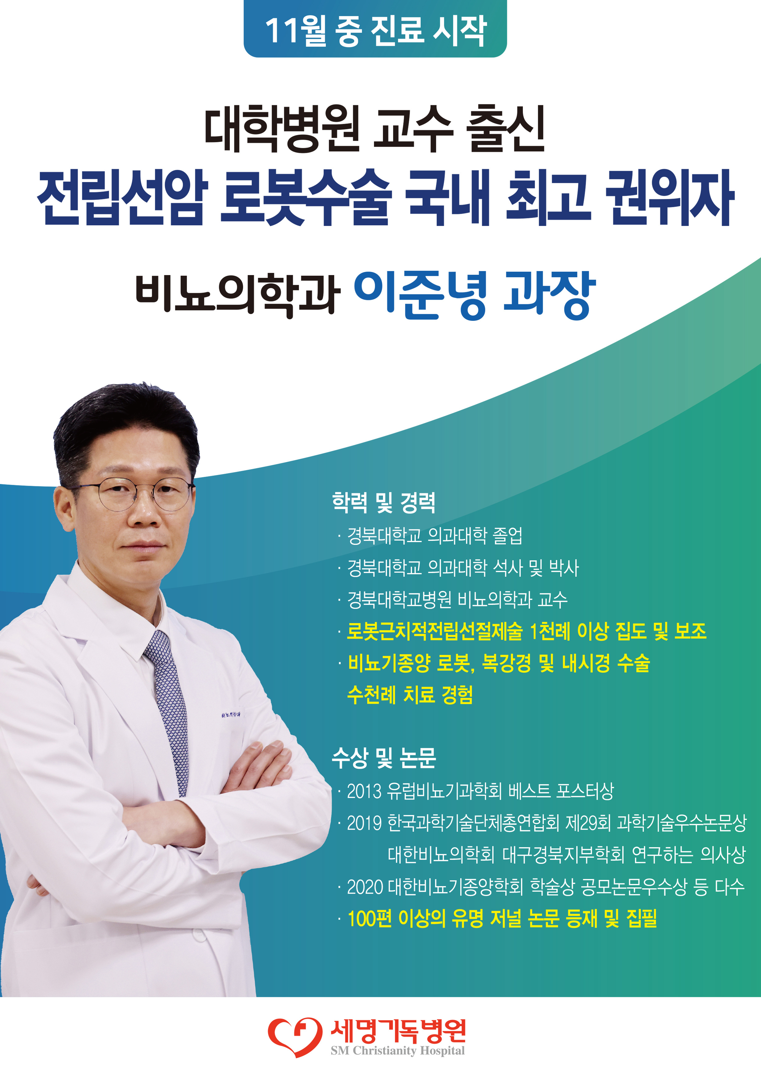 국내 전립선암 로봇수술 권위자 이준녕 과장 영입