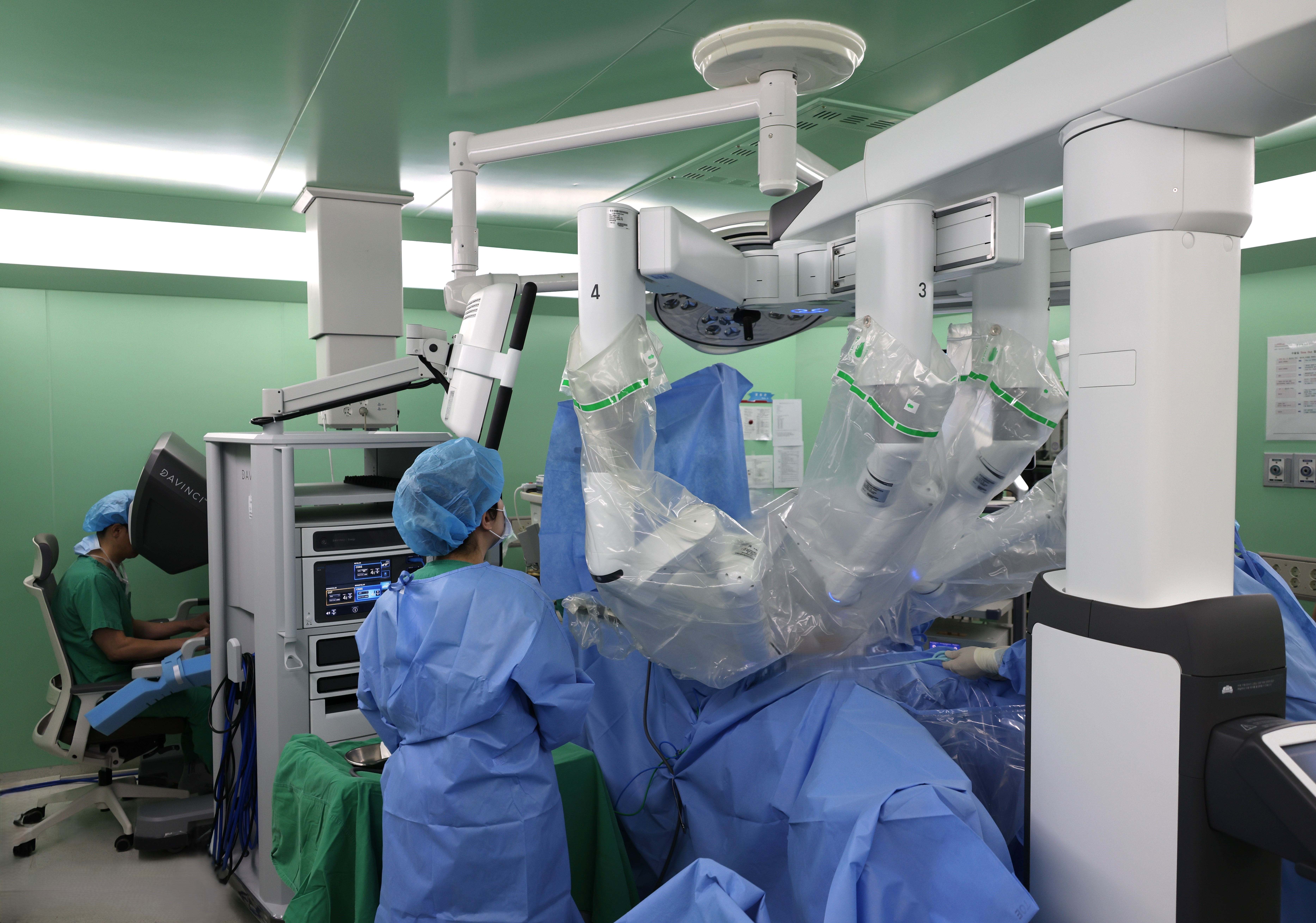 우리 병원은 지역 최초로 다빈치 Xi 로봇수술 장비 운영을 시작했습니다. 다빈치 로봇수술 장비는 좁은 공간에서도 시야를 크게 확보할 수 있고 약 8mm 길이의 로봇팔을 이용, 정밀한 수술이 가능해 종양의 정밀한 제거와 수술 후 통증과 출혈을 줄일 수 있어 환자 회복을 앞당기고 부작용을 최소화합니다.
