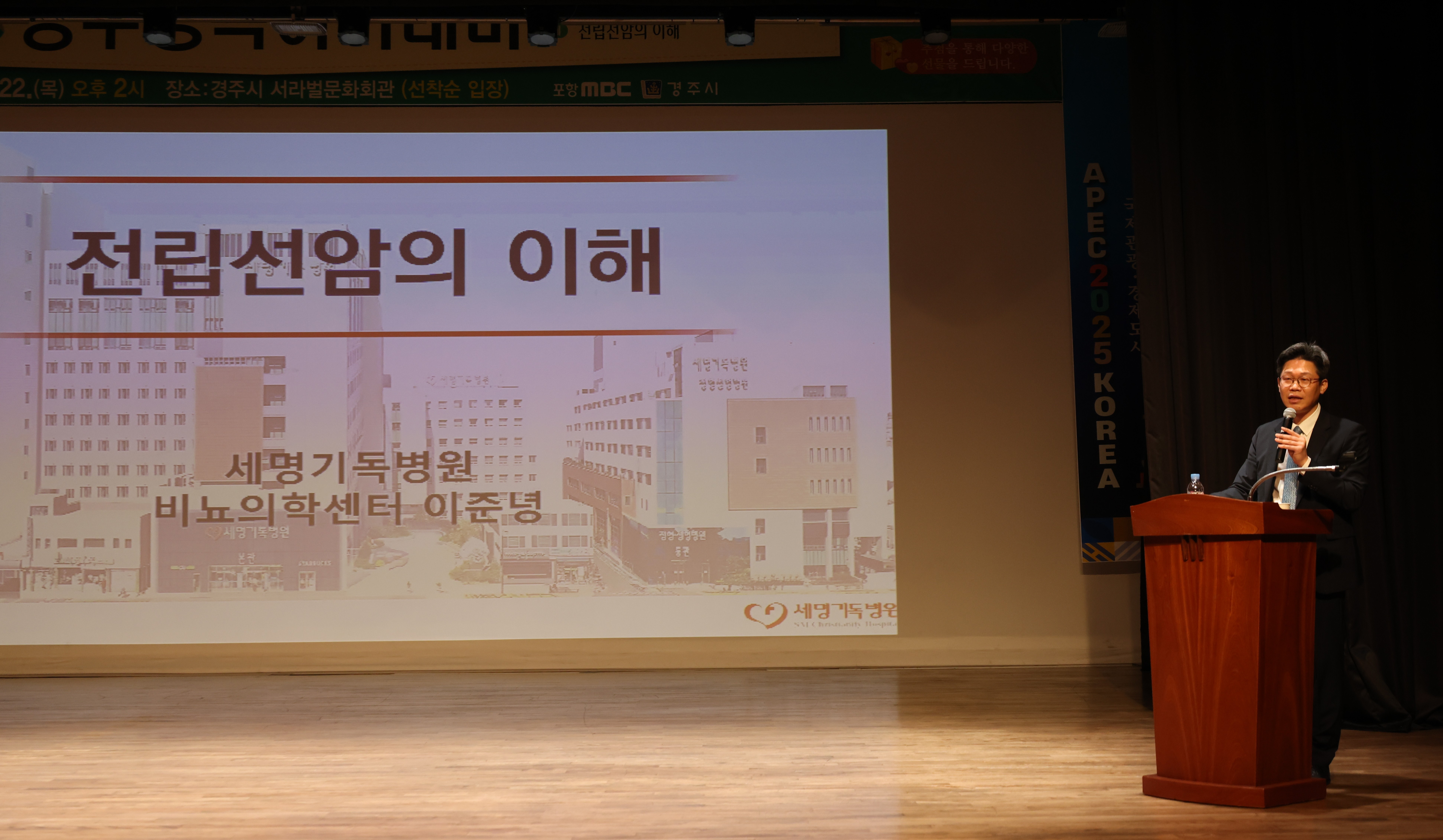 포항세명기독병원 비뇨의학센터 이준녕 센터장 강연 모습 |