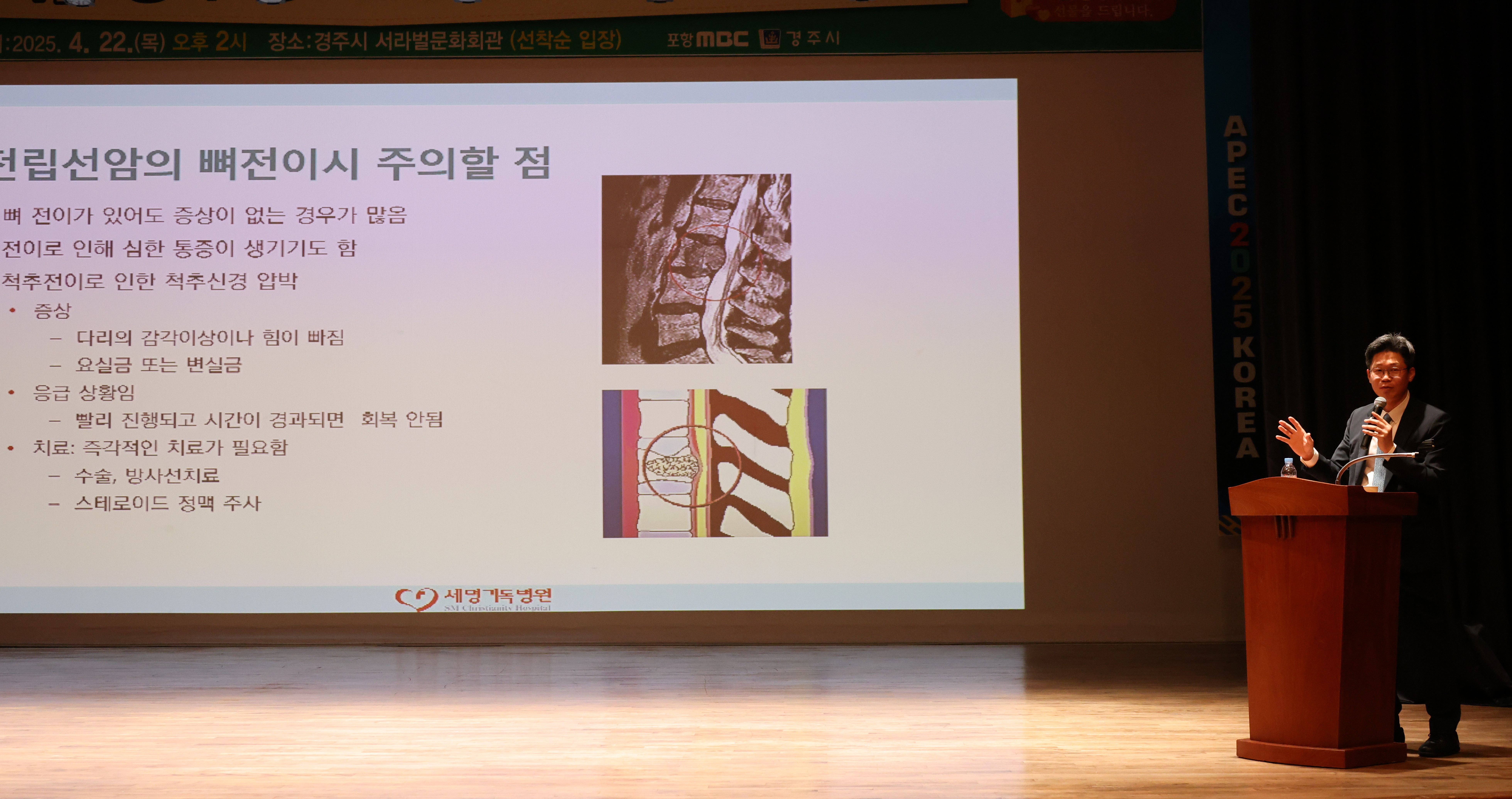 110여 명의 경주 시민이 참석한 이번 강연에서 이준녕 센터장은 급증하는 전립선 질환을 비롯해 전립선암의 주요 증상, 발생 원인, 치료법, 최신 치료 기술