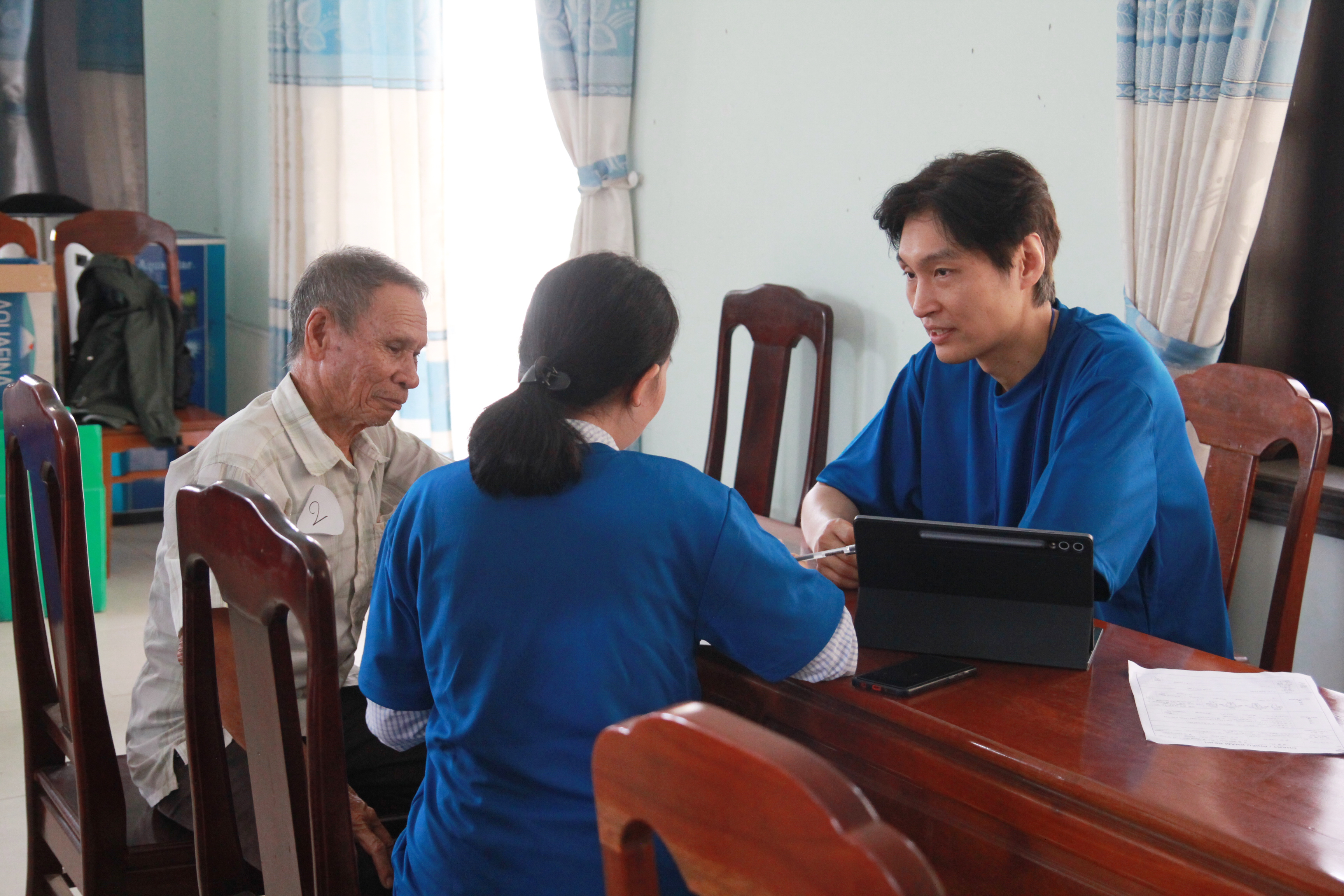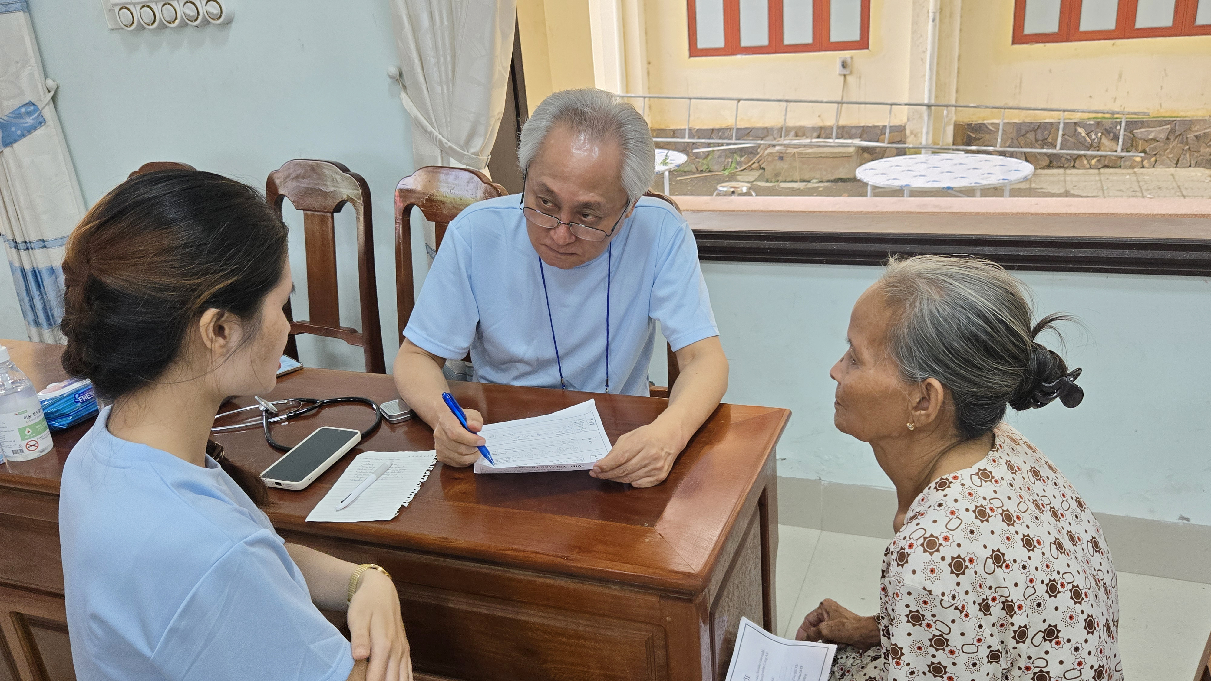 비가 내리는 어려운 환경 속에서도 많은 주민이 진료받기 위해 몰려왔으며, 봉사팀은 혈압‧체온 측정, 혈당 검사 등 기본 건강검진을 하고, 이어 세명기독병원 의료진과 현지 의료진이 함께 내과, 안과, 통증 치료, 통합 면역 등의 진료를 했습니다. 진료 후 주민들에게 맞춤형 약품과 식료품을 전달해 큰 호응을 얻었습니다. 특히 외부인 방문이 드문 지역의 특성을 고려해 현지 주민 200여 명의 사진을 직접 촬영해 인화본을 선물했으며, 고엽제 피해 가족 10가정을 방문해 약값과 생필품, 선물 등을 전달하며 따뜻한 위로와 기도의 시간을 가졌습니다.
