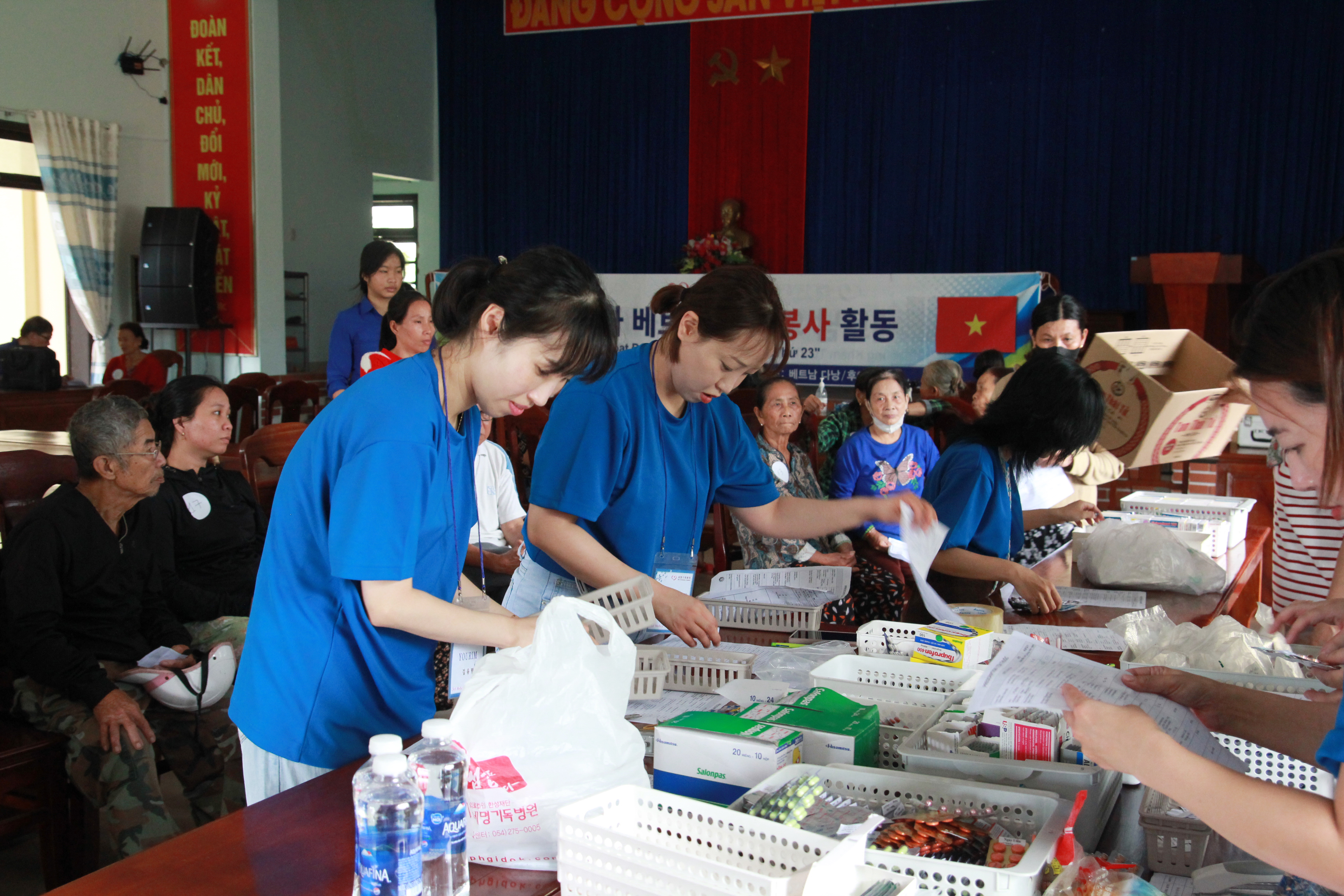세명기독병원 의료봉사팀이 조제된 약을 확인하고 분류하는 모습 |