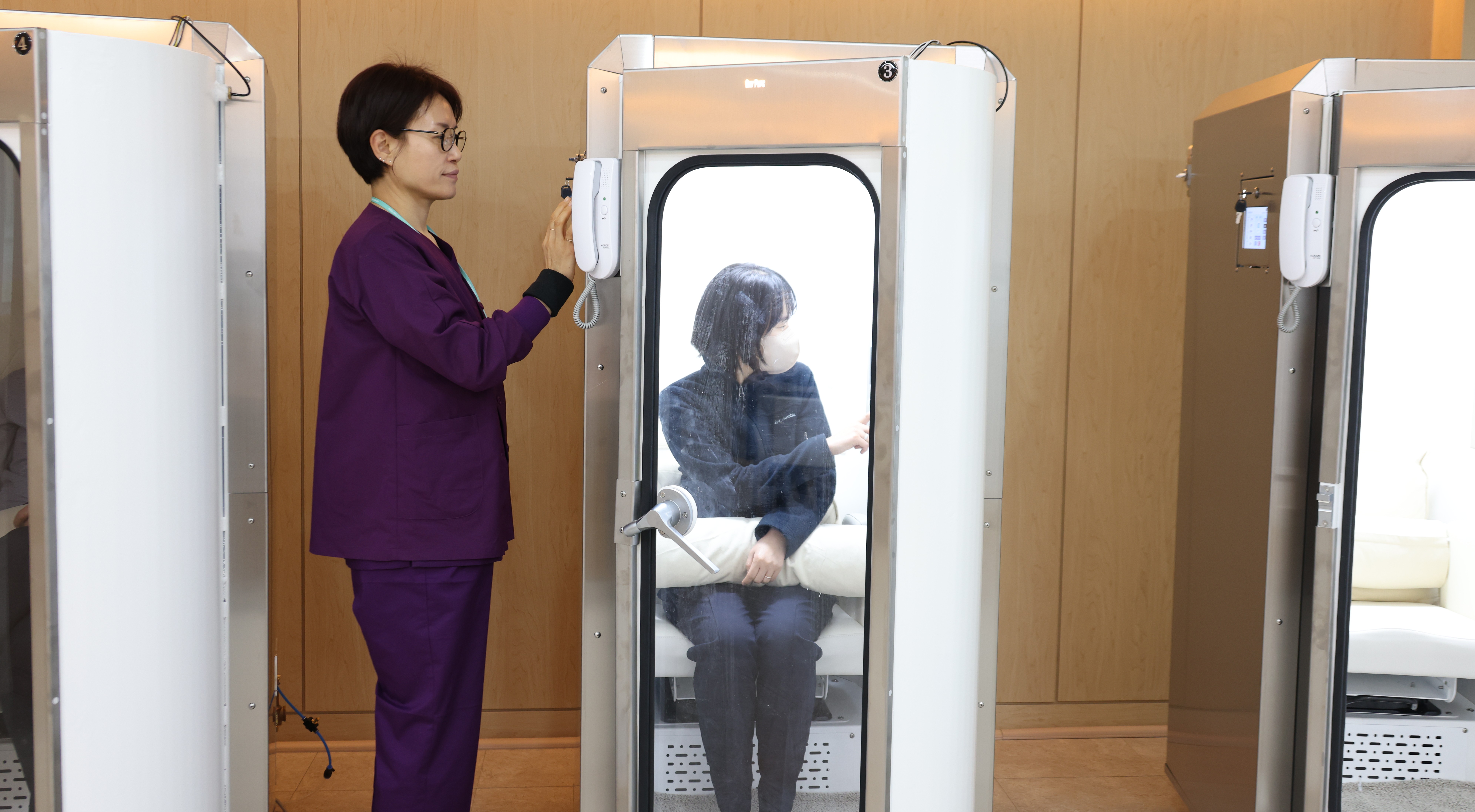 우리 병원은 1인용 고압챔버로 치료실을 운영해 개별 공간에서 보다 편안하고 쾌적하게 치료를 받을 수 있도록 했습니다.
