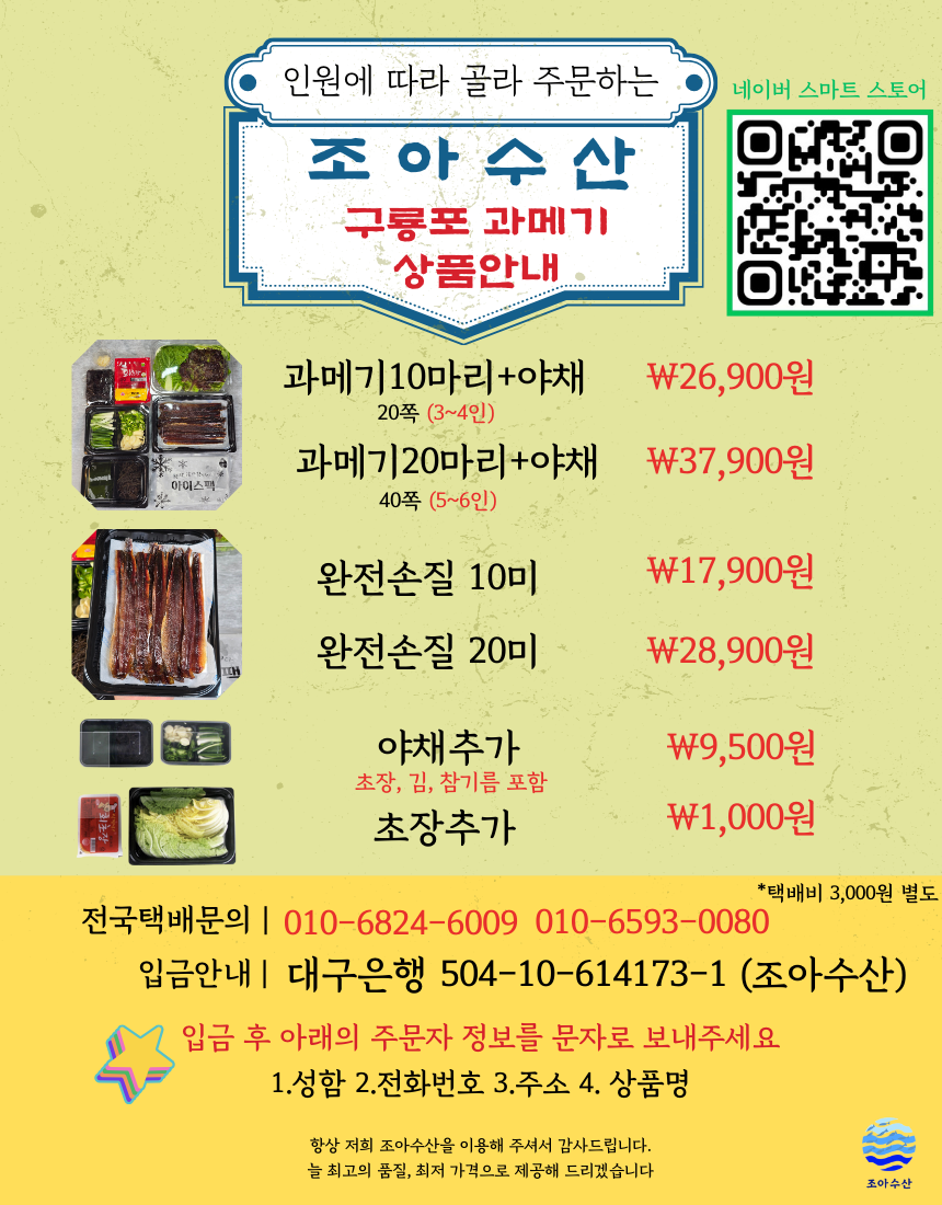 또는 '네이버 스마트스토어'나 '쿠팡'에서 "조아수산 과메기"를 검색하셔도 됩니다.