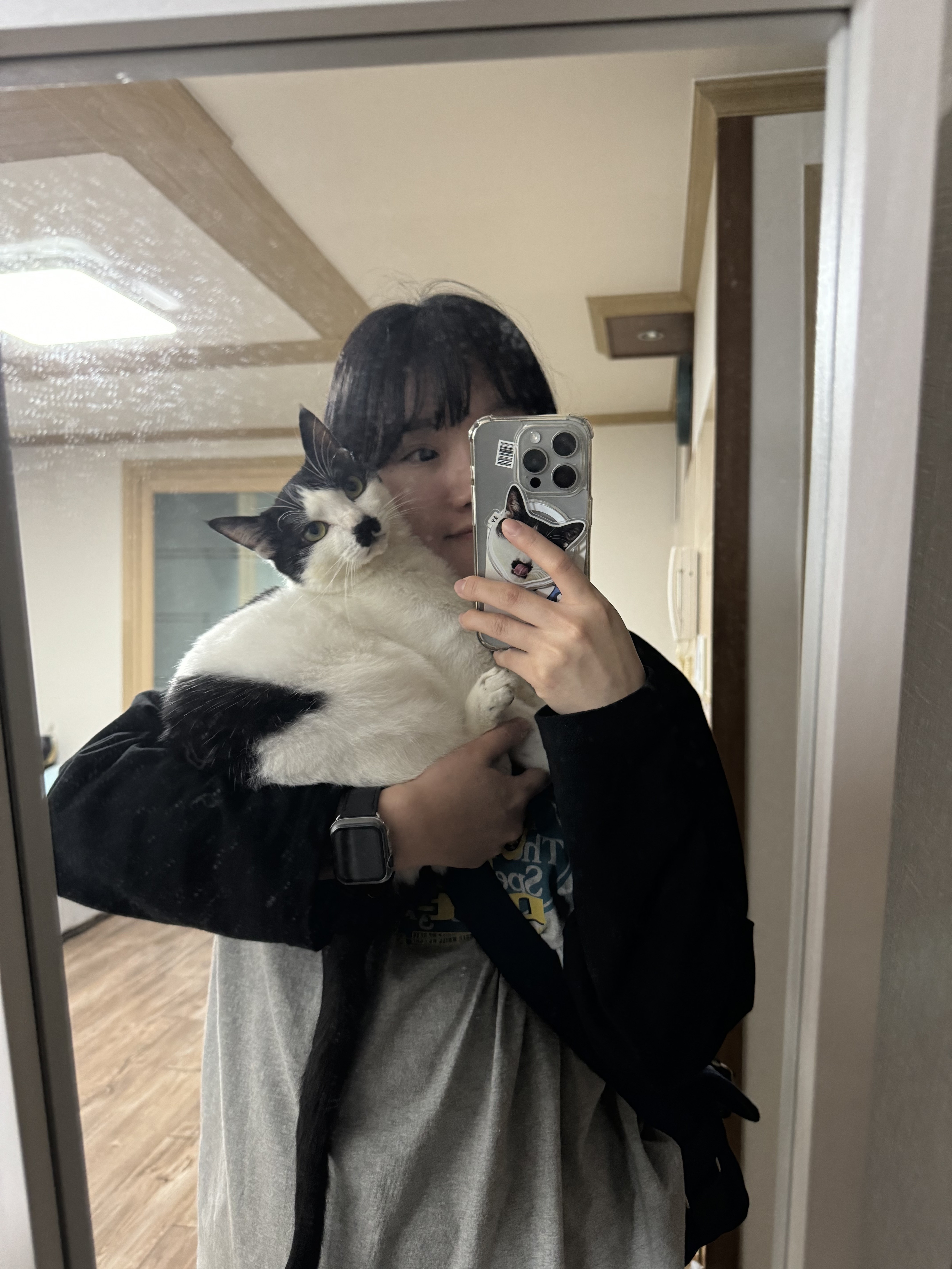 애교냥이로 항상 저를 따라다니며 화장실앞까지;;ㅎㅎ 잘때는 제 옆에 꼭 붙어 골골송을 부르며 자야하는 제눈엔 항상 애기인 춘장이 입니다.