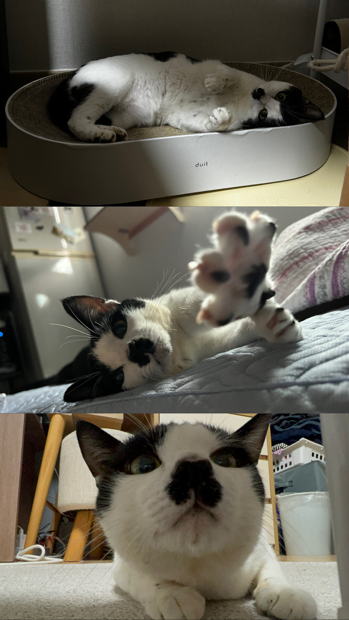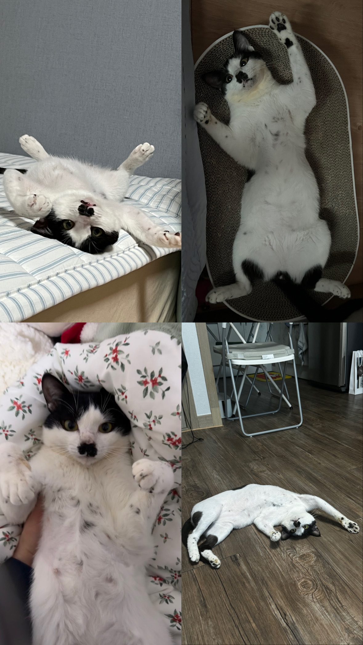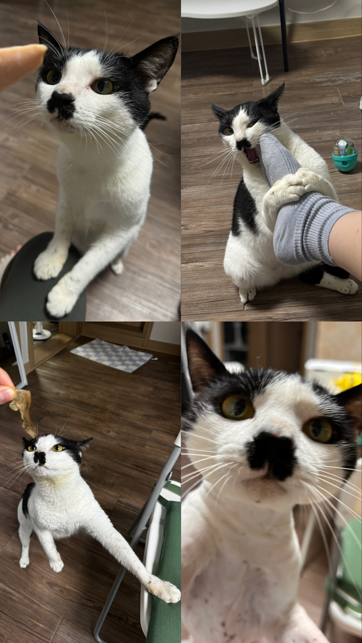 사람을 좋아하여 집에 손님이 방문하게 되면 처음은 경계하다 발라당 누워 애교부리며 반겨준답니다.