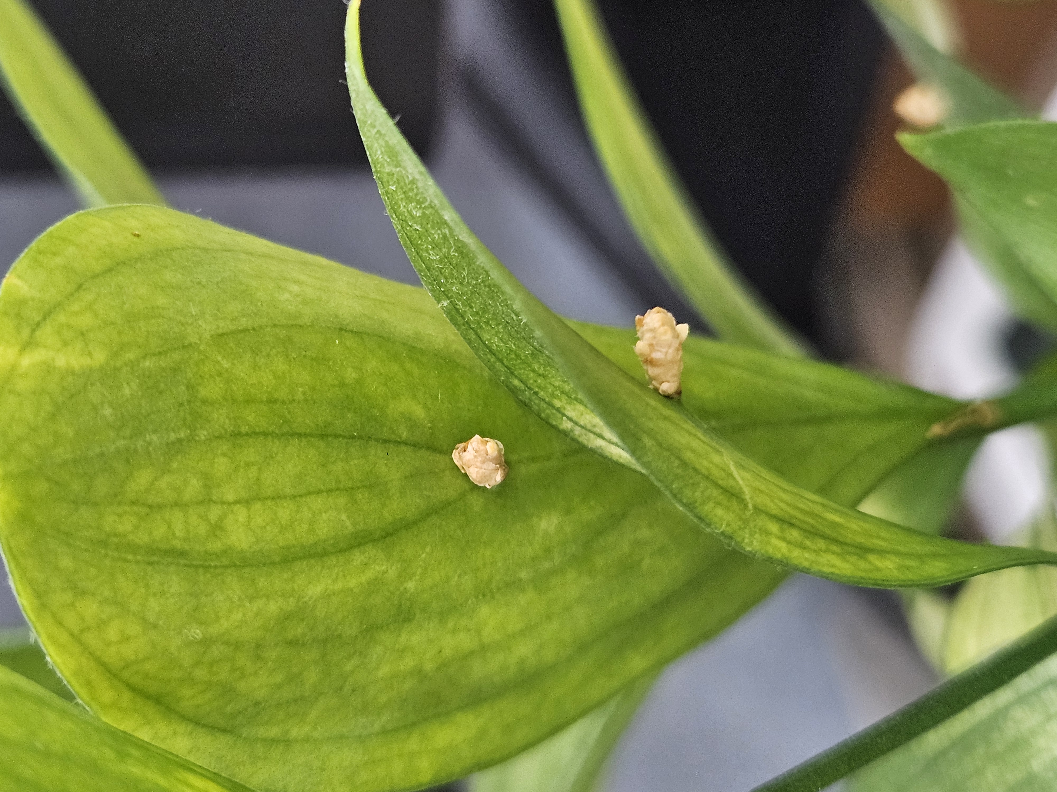 잎 중앙(앞 또는 뒷면)에서 싹이 나고 꽃이 펴요