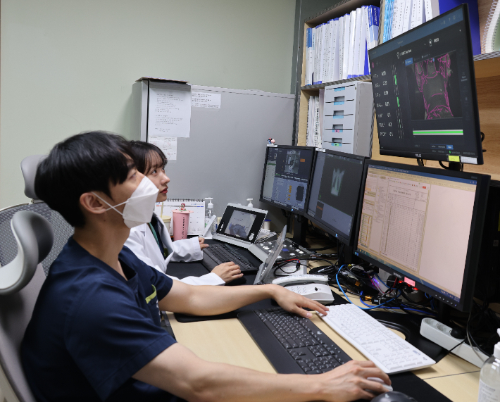 치료 계획대로 치료가 진행되는지 확인하고 있습니다.